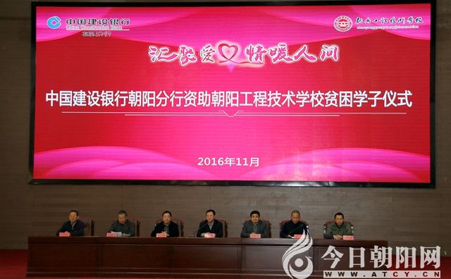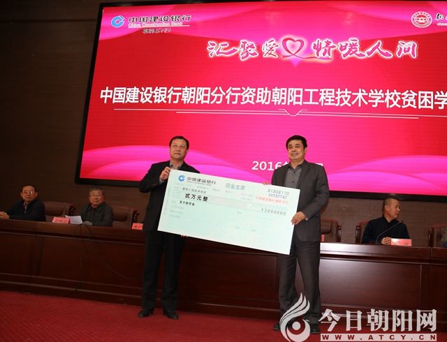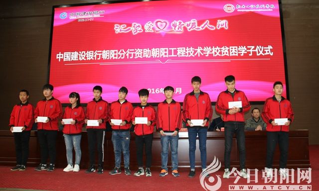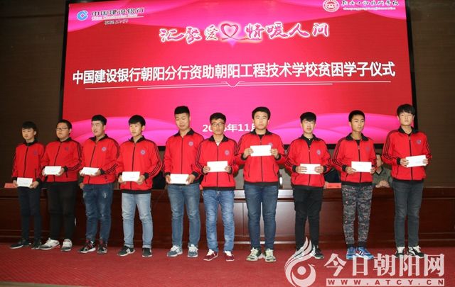2016年11月3日下午,中國建設(shè)銀行朝陽分行2016“龍卡助學(xué)金”發(fā)放儀式在遼寧朝陽工程技術(shù)學(xué)校舉行。工校20名貧困學(xué)生分別獲得1000元助學(xué)金。