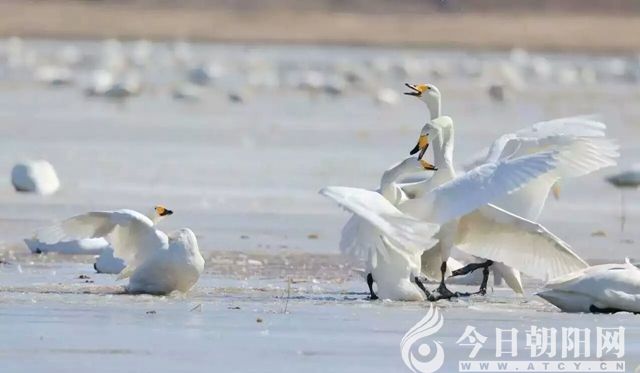 原來,這是數(shù)千只白天鵝正在這里召開一年一度的迎春大會。