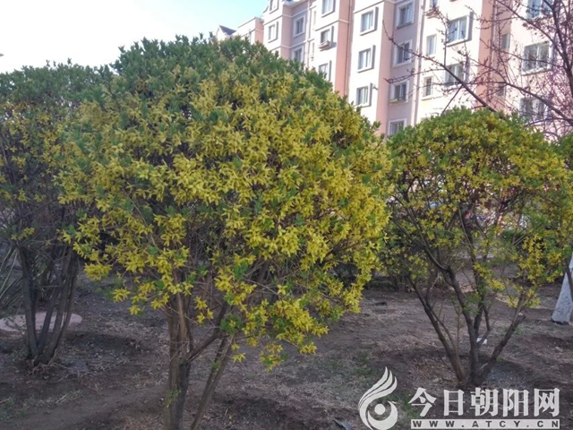 讓我們一起漫步在朝陽的大街小巷。這里,到處鮮花盛開,讓你駐足流連。粉色的榆葉梅開得那樣絢爛,它比天邊的云霞更鮮艷,比桃花更茂盛,更有生命力,像是卯足了勁似地綻放。它像年輕小伙在勁舞青春,又像妙齡少女在炫耀花季年華。連翹花展開它那夸張的葉片,努力迎接春天,像要把大自然擁入自己的懷抱。紫丁香高舉紫色花束,逢人便要炫耀“我要成為春天的主角!”