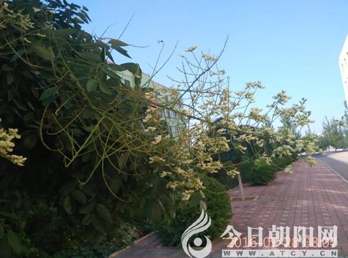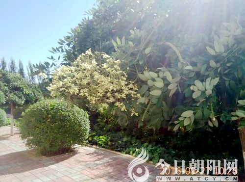 枝繁葉茂龍爪槐,反季花開(kāi)耀眼白。