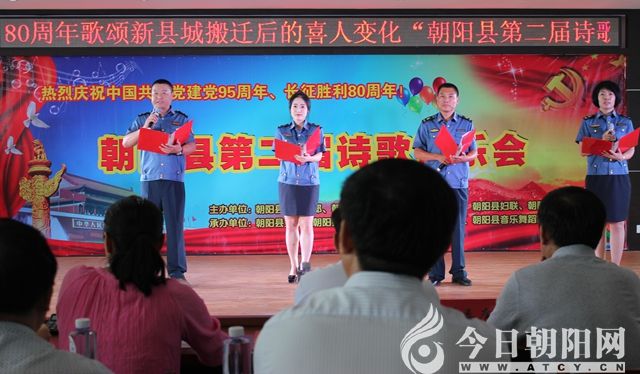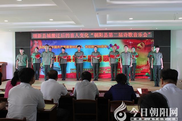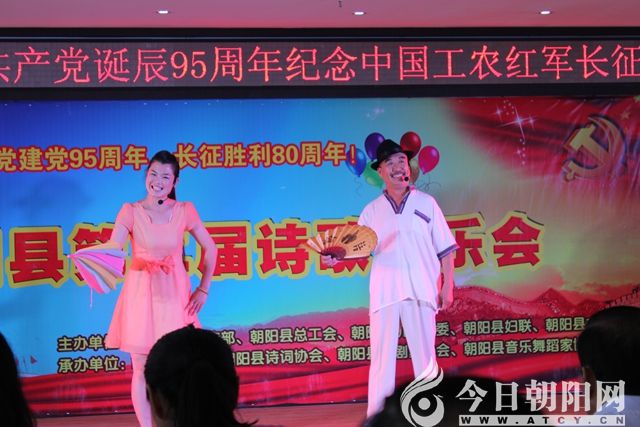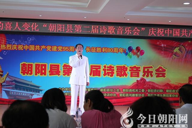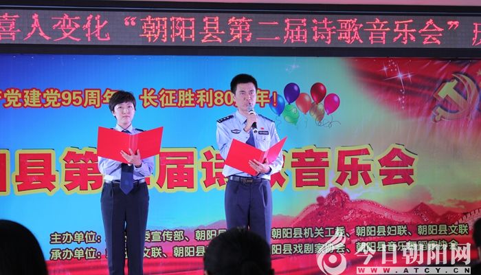 朝陽縣文化底蘊(yùn)深厚,群眾性的詩歌、音樂藝術(shù)活動層出不窮,在全市、全省乃至全國都享有盛譽(yù)。詩歌音樂會上,詩歌音樂愛好者代表和文藝名家聯(lián)袂演出。他們以優(yōu)美的旋律,輔以激昂的詩歌,表達(dá)了慶祝建黨95周年的喜悅之情,同時也表達(dá)了新縣城勝利搬遷的自豪。