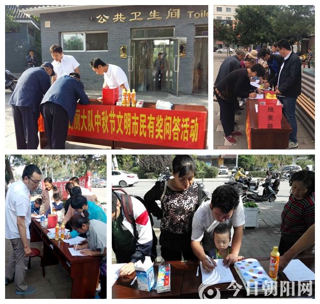 9月15日至9月17日,中秋節(jié)小長(zhǎng)假期間,遼寧省朝陽(yáng)市環(huán)衛(wèi)局城市公廁管理大隊(duì)組織“時(shí)傳祥青年團(tuán)隊(duì)”和機(jī)關(guān)全體工作人員走上街頭,以“迎中秋·慶國(guó)慶”為契機(jī),在朝陽(yáng)北塔廣場(chǎng)公廁、政府南公廁、文化廣場(chǎng)公廁、萬(wàn)人廣場(chǎng)公廁等沿街公廁門前開(kāi)展了“中秋節(jié)文明市民有獎(jiǎng)知識(shí)競(jìng)答活動(dòng)”,吸引了大批市民參加。