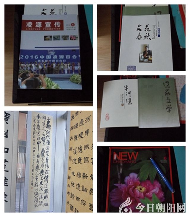 洪陽(yáng)熱情地把我引到市府一樓的書(shū)法展廳,一一介紹本土?xí)业淖髌?。怕我不認(rèn)識(shí),邊吟誦,邊介紹作者,我也第一次近距離感受了書(shū)法的厚重。不忍太長(zhǎng)時(shí)間打擾公務(wù)繁忙的洪陽(yáng),瞻仰完畢,告辭。臨走,洪陽(yáng)贈(zèng)與我一些書(shū)籍:《牛河梁》,《新朝陽(yáng)》,《凌源宣傳》,《文苑春秋》,《遼西文學(xué)》。