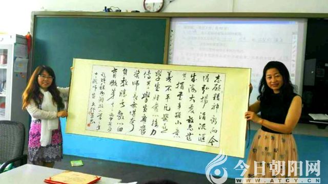 當(dāng)劉春華把中國(guó)楹聯(lián)圖書(shū)館為他們?nèi)w師生頒發(fā)的優(yōu)秀志愿者證書(shū)、藏書(shū)證書(shū),以及中國(guó)楹聯(lián)圖書(shū)館、中國(guó)志愿者圖書(shū)館館長(zhǎng)李建軍為他們親筆書(shū)寫(xiě)的書(shū)法作品交到班主任劉老師手中,還有李建軍館長(zhǎng)的題詞“志愿精神永,而今得弘揚(yáng)。涓流匯成海,大愛(ài)放光芒。捐書(shū)事雖小,意義不平凡。最喜學(xué)生娃,愛(ài)心接力傳。學(xué)生應(yīng)褒獎(jiǎng),師長(zhǎng)亦堪夸。身教勝言教,心田育嫩芽。”念給孩子們聽(tīng)時(shí),孩子們激動(dòng)地歡呼起來(lái)。劉老師對(duì)中國(guó)楹聯(lián)圖書(shū)館、中國(guó)志愿者圖書(shū)館和遼寧省朝陽(yáng)縣尚志紅軍學(xué)校表示感謝,同時(shí)也表示,以后還要?jiǎng)訂T孩子們?yōu)橛⑿奂亦l(xiāng)繼續(xù)捐書(shū),并希望有機(jī)會(huì)帶孩子們?nèi)ド兄炯t軍學(xué)校參觀學(xué)習(xí)。
