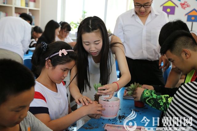 你看,該校園林專業(yè)張昕老師化身為“太陽姐姐”,為孩子們講解插花知識(shí),并帶領(lǐng)孩子們動(dòng)手做美麗的插花花籃以及可愛的多肉拼盆。在“太陽姐姐”的耐心指導(dǎo)下,孩子們饒有興趣地制作自己的作品,臉上洋溢著興奮的笑容。