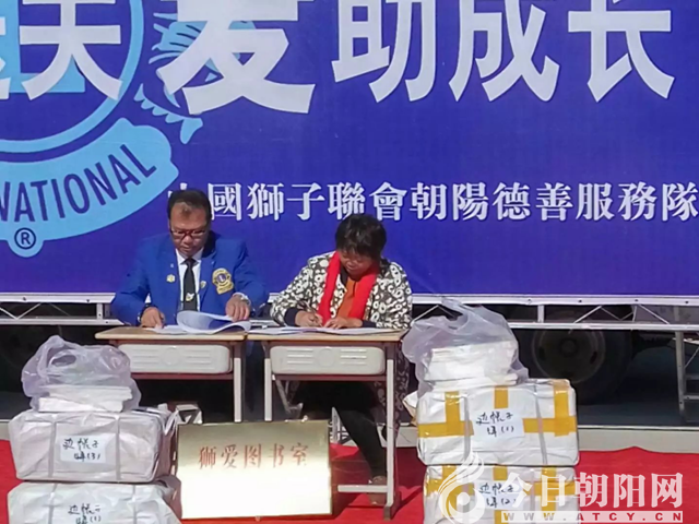 接著獅友們站在舞臺邊列隊歡迎孩子們來到會場。孩子們?nèi)雸龊螅w獅友來到舞臺中央朗誦獅友八大信條。獅子會會長譚昌閣,獅友龍城教育體育局局長李玉江、邊杖子中心小學校長索景利分別作了熱情洋溢的講話。獅子會譚昌閣會長和邊杖子小學韓守杰校長簽訂了“溫馨工程,獅愛圖書館”協(xié)議。獅友李建平為邊杖子小學捐助了15000余元的書櫥、圖書。譚昌閣會長還為老師們送來了日記本,并贈送每位老師一枚獅子會個人徽章。