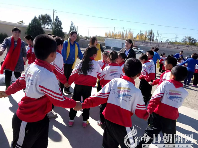 接下來朝陽市教師進修學院民族教育部陳英杰老師來到舞臺中央推廣經(jīng)典誦讀《弟子規(guī)》,孩子們和陳老師一起誦讀,操場上書聲瑯瑯,孩子們心花怒放。獅友們稱贊孩子們朗誦得非常好。龍城區(qū)教師進修學校心理健康教育部張曉琴老師帶領所有在場的志愿者、獅友和師生們一起做心理游戲“贊美的力量”。大家在《找朋友》的音樂聲中找到自己的朋友,然后贊美他,每個人都收到了贊美的語言,感受到贊美的力量。接下來請獅友們來到舞臺中央,和孩子們一起擠爆氣球,讓孩子們接受超級祝福。之后獅友們、麗都名品的志愿者、教師進修學校的志愿者們和全體師生一起合唱《讓世界因你而美麗》。