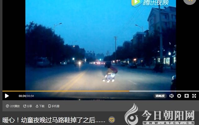 暖心!幼童夜晚過馬路鞋掉了之后……