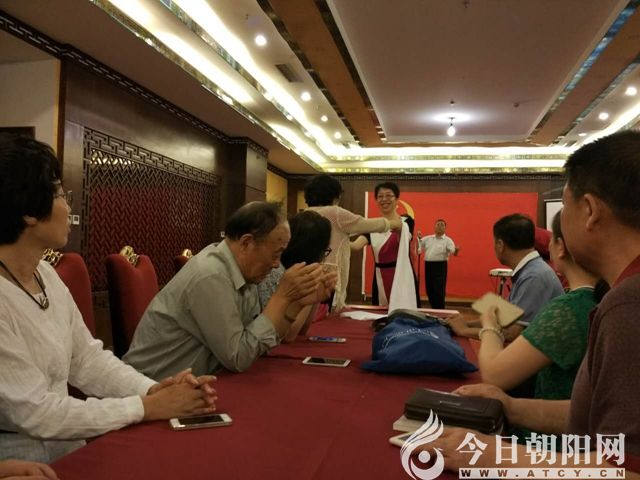 黨員教育活動(dòng)正式開始了,兩個(gè)學(xué)會(huì)、一個(gè)基金會(huì)的領(lǐng)導(dǎo)們帶領(lǐng)大家在黨旗下莊嚴(yán)地舉起右手,重溫入黨誓詞,隨著領(lǐng)誓人高建明洪亮的聲音,大家一字一句地高聲誦讀著曾經(jīng)激勵(lì)著自己獻(xiàn)身黨和人民事業(yè)的誓言。宣誓完畢,雄渾的音樂響起,大家齊聲唱起《國際歌》。一曲唱罷,當(dāng)《沒有共產(chǎn)黨就沒有新中國》的旋律響起的時(shí)候,沈陽電臺(tái)主持人點(diǎn)點(diǎn)老師主動(dòng)請(qǐng)纓指揮,隨著她充滿激情和律動(dòng)的有力手勢(shì),大家對(duì)黨和人民的愛意化作鏗鏘有力的歌聲,在狹長的會(huì)議室里唱響、回蕩。