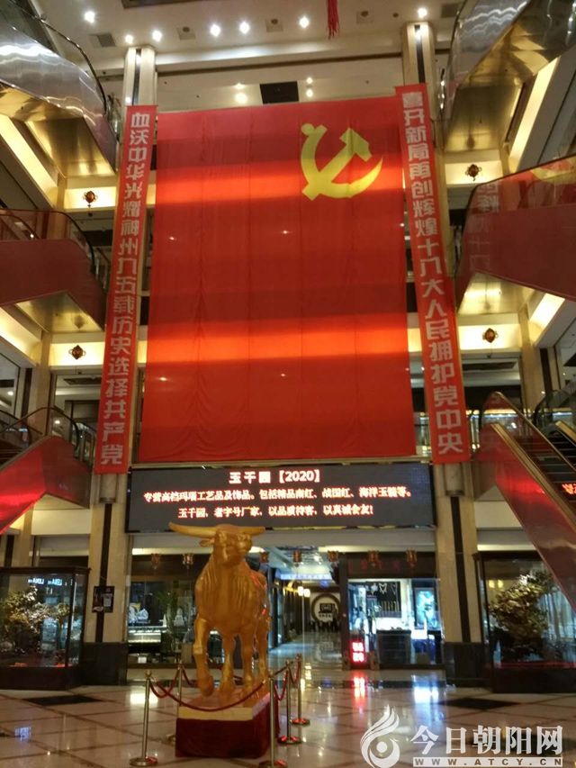 一進(jìn)門,大家的視線便被大堂正中懸掛的一面巨大的黨旗吸引過去了。據(jù)前來接待的工作人員介紹,這是現(xiàn)今沈陽最大的一面特制黨旗,約三層樓高,面積70余平方米。鮮紅的黨旗從四樓垂下來,金色的黨徽熠熠生光,兩側(cè)一副長聯(lián):“血沃中華光耀神州九五載歷史選擇共產(chǎn)黨,喜開新局再創(chuàng)輝煌十八大人民擁護(hù)黨中央。”站在大堂,大家仰望黨旗,敬仰與肅穆之情油然而生。同行的攝影家侯劍華先生熱情地招呼大家拍照,站在黨旗下,我們的臉上都平添了一份莊嚴(yán)。