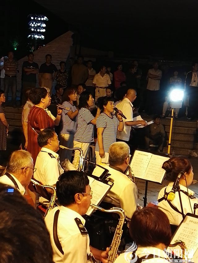 出于敬佩,趕緊用手機抓拍了幾張照片,然后,忙不迭地與收拾設備的演員攀談。經(jīng)詢問得知,該藝術團是由一些愛好音樂的人士自發(fā)組織的純民間文藝演出團體,團長名叫趙聯(lián)義(就是那位“白衣先生”)。目前,該藝術團已擁有隊員40多人。為了迎接中共九五華誕,他們自編、自導、自演了這場演唱會。整場演出歷時1小時20分鐘,共計演出了《東方紅》《國歌》《最美的歌唱給媽媽》《走進新時代》《把一切獻給黨》《共筑中國夢》《黨啊親愛的媽媽》《兒行千里》《我愛你中國》《軍人本色》《映山紅》等18個節(jié)目。