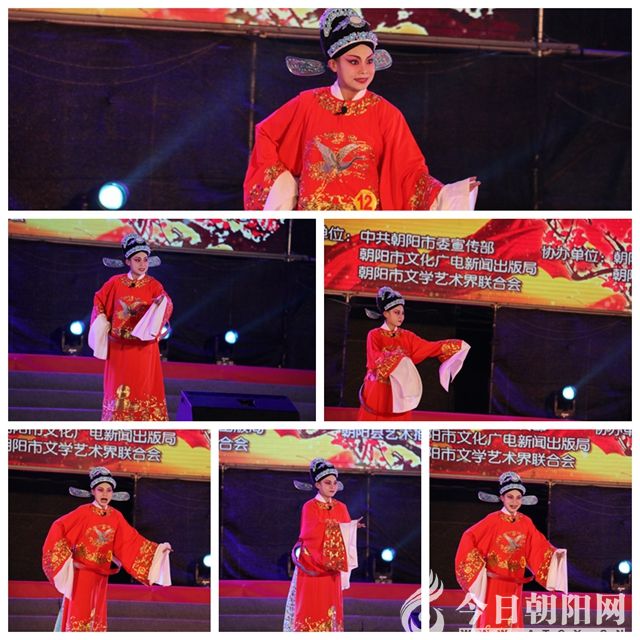 其中,來自北票市文化館的王昊月,以一襲紅袍的謝瑤環(huán)扮相出場,為大家奉獻了評劇《謝瑤環(huán)》選段“來了我忠心報國謝瑤環(huán)”。表演中,王皓月身段婀娜,動作利落,字正腔圓,臺風(fēng)穩(wěn)健,表現(xiàn)出了扎實的藝術(shù)功底。她的精彩演出,令觀眾如醉如癡,有人竟然高喊:“再來一個!”據(jù)了解,王昊月出生于文藝氛圍十分濃厚的家庭,父親王忠臣曾擔(dān)任北票評劇團團長。受父親影響,小昊月自小就喜歡評劇。父親因為工作忙,沒時間教她,她就偷偷地拜光盤為師,從一招一式、一字一句慢慢學(xué)起,用心揣摩,苦學(xué)不輟。也許正應(yīng)了“苦心人天不負”那句老話,在第一屆東北三省評劇票友大賽上,她演唱的一段評劇《滿園春色》,竟然一鳴驚人,一舉斬獲金獎。2015年,在“天津?qū)氻票h(huán)渤海七省評劇票友大賽”中,她一路過關(guān)斬將,獲得十佳名票榮譽。經(jīng)過不懈努力,王昊月終于拜到評劇大師花淑蘭老師的得意弟子、評劇名家、國家一級演員趙俊芝老師的門下!經(jīng)過名師指點,王昊月更是如虎添翼,進步飛快,迅速成為令業(yè)界矚目的青年才俊。