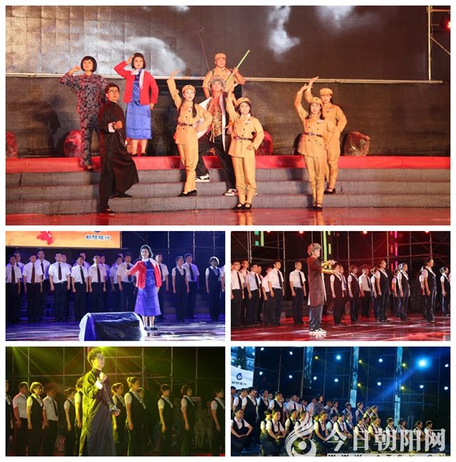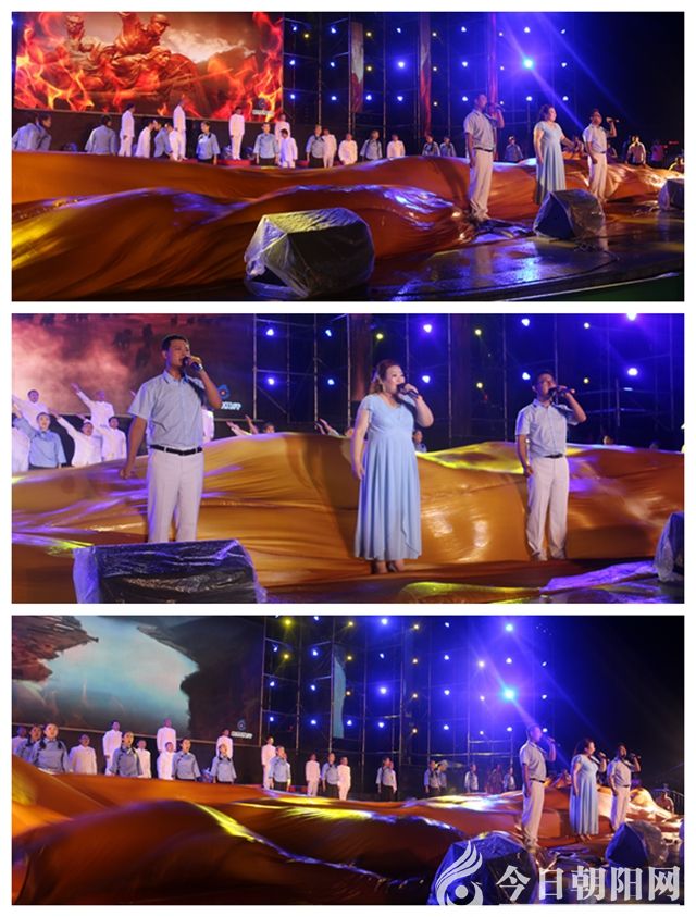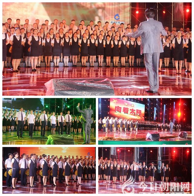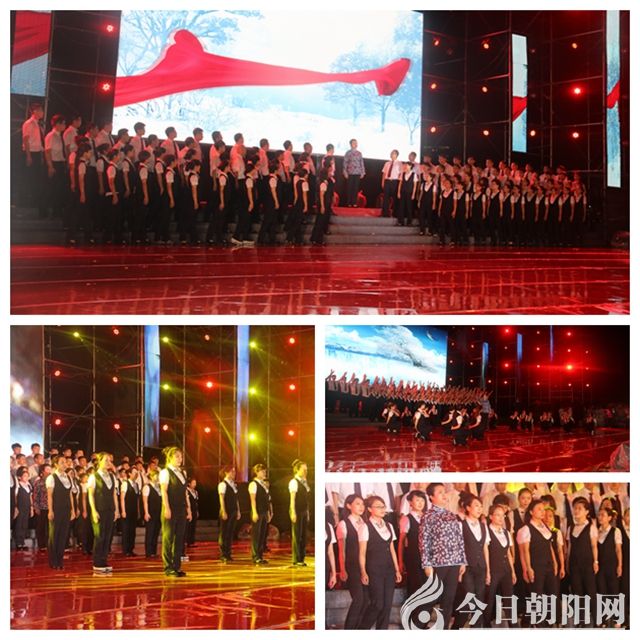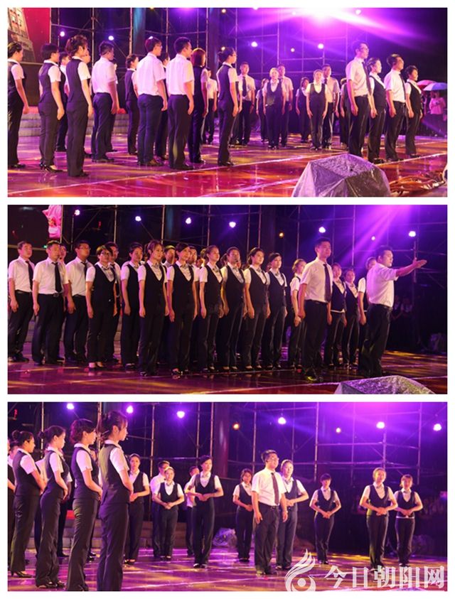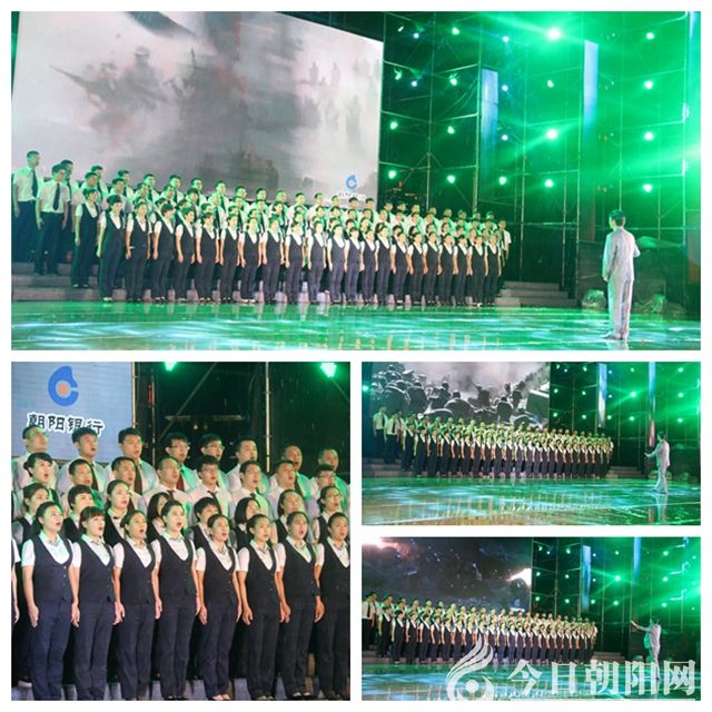 整臺(tái)演出分為三大章節(jié)。第一章:《向著太陽(yáng)》,主要節(jié)目有:大合唱《沒有共產(chǎn)黨就沒有新中國(guó)》《朝陽(yáng)銀行行歌》;歌舞《夢(mèng)圓我家鄉(xiāng)》;音詩(shī)畫《與你同行 托起朝陽(yáng)》;合唱與獨(dú)唱《在太行山上》《永恒》《嫂子頌》。雨中,來(lái)自朝陽(yáng)銀行總行機(jī)關(guān)、營(yíng)業(yè)部、匯通支行、凌濱支行、新華支行、朝陽(yáng)縣支行、龍城支行的工作人員,以及徐鐵舞蹈工作室的伴舞演員們,歌壯舞酣,唱出了對(duì)黨、對(duì)祖國(guó)、對(duì)家鄉(xiāng)的熱愛,抒發(fā)了緬懷先烈、繼承遺志的豪情。讓人印象深刻的是他們集體演唱的《朝陽(yáng)銀行行歌》。悠揚(yáng)婉轉(zhuǎn)的旋律,膾炙人口的歌詞,彰顯了銀行的文化底蘊(yùn),宣揚(yáng)了銀行的價(jià)值理念,昭示了銀行的發(fā)展前景,展現(xiàn)了干部員工銳意進(jìn)取、勇于創(chuàng)新、昂揚(yáng)向上的精神風(fēng)貌,表達(dá)了對(duì)美好前景的向往和祝福。
