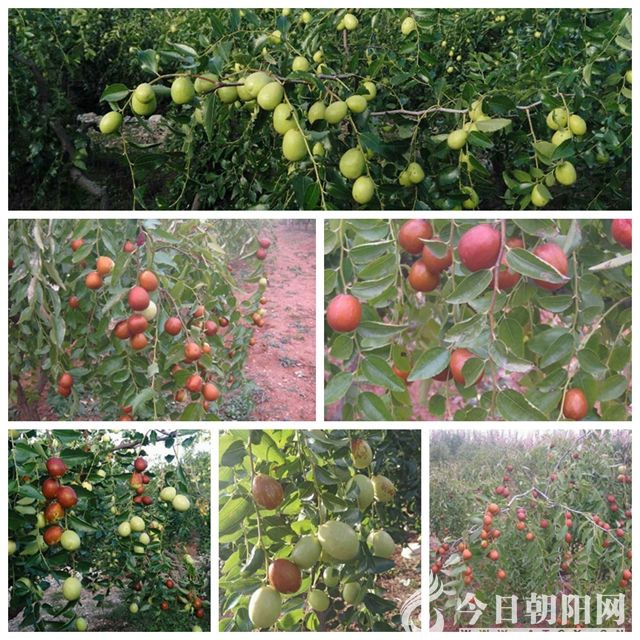 每年此時,朝陽本地平頂棗已經(jīng)進(jìn)入成熟后期,趙大哥家的大棗才剛剛紅上枝頭。據(jù)趙大哥介紹,自2006年開始,他和父親將這里的山坡修整為平地,并種植上大棗。棗園土質(zhì)是紅土,經(jīng)相關(guān)專業(yè)人士測定,紅土地所含微量元素豐富,為大棗的生長提供了豐富的營養(yǎng)。園內(nèi)主要以金鈴大棗為主,另外還有月光棗、美人指、平頂、香水棗等多個品種。其中,月光棗是趙大哥5年前從外地考察引進(jìn)的品種,經(jīng)過多次實驗、請教專家,形成了遼西獨有的品種,并命名為“月光棗”。該棗皮薄、汁多,棗核極小,口感甜脆,一上市就備受歡迎。