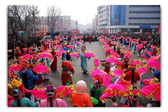 凌源的大秧歌還有一個(gè)特點(diǎn)就是扭的時(shí)間特別長(zhǎng),過(guò)去有一句民間俗語(yǔ)叫做“耍正月鬧二月,瀝瀝拉拉到三月”,甚至有的地方一直扭到春種,地種完了再接著扭。說(shuō)的是凌源人在上世紀(jì)初辦會(huì)扭秧歌的時(shí)間之長(zhǎng),雖然有些夸張,但是真實(shí)地描繪了凌源人樂(lè)觀向上的生活態(tài)度。上世紀(jì)五六十年代開始農(nóng)村扭秧歌的時(shí)間逐漸縮短,但也能扭到正月十五之后甚至扭到二月二龍?zhí)ь^。進(jìn)入人民公社化之后,這種長(zhǎng)時(shí)間歌舞升平的做法被作為資產(chǎn)階級(jí)生活方式和不思進(jìn)取的生活態(tài)度被批判,文革后期的幾年扭秧歌被全面禁止,農(nóng)村出現(xiàn)長(zhǎng)時(shí)間沒(méi)有秧歌可看的局面。文革過(guò)后的七十年代末、八十年代初,改革開放的東風(fēng)也吹綠了凌源農(nóng)村文藝工作這片荒草,上級(jí)放開扭秧歌禁令并鼓勵(lì)農(nóng)村開展形式多樣的文化活動(dòng),扭秧歌也得到恢復(fù),并層層舉辦培訓(xùn)班,引進(jìn)了外地扭秧歌的一些新元素,凌源大秧歌又紅紅火火地辦了起來(lái)??墒请S著老藝人身體條件原因逐步退出,熱心農(nóng)村文藝工作的年輕人越來(lái)越少,很多大秧歌表演技藝已經(jīng)失傳。加上電視的普及,麻將的泛濫,現(xiàn)在農(nóng)村春節(jié)期間很難見(jiàn)到扭秧歌的隊(duì)伍了,記得我最后一次在家鄉(xiāng)看秧歌是在1989年的正月。
