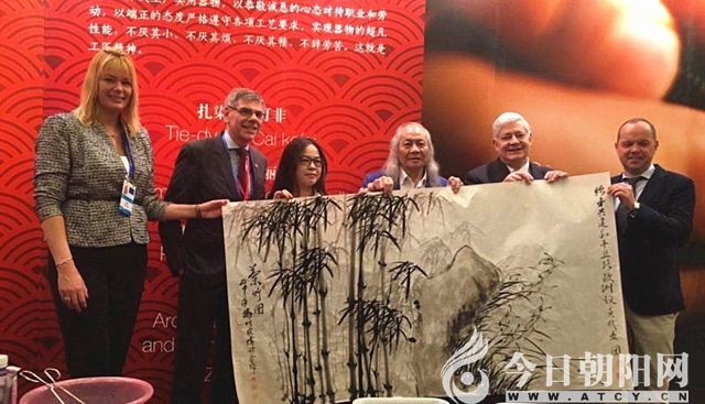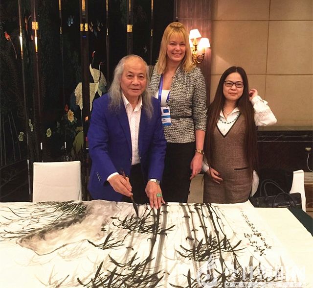 近日,我國(guó)著名畫家楊竹、農(nóng)偉珍夫婦將他們共同創(chuàng)作的《蘭竹圖》在上海新錦江大酒店贈(zèng)送給了歐洲議員代表團(tuán),代表團(tuán)團(tuán)長(zhǎng)高度評(píng)價(jià)了東方文化和楊竹的作品,并表示,他會(huì)將這幅來自中國(guó)的優(yōu)秀作品懸掛在歐盟總部。