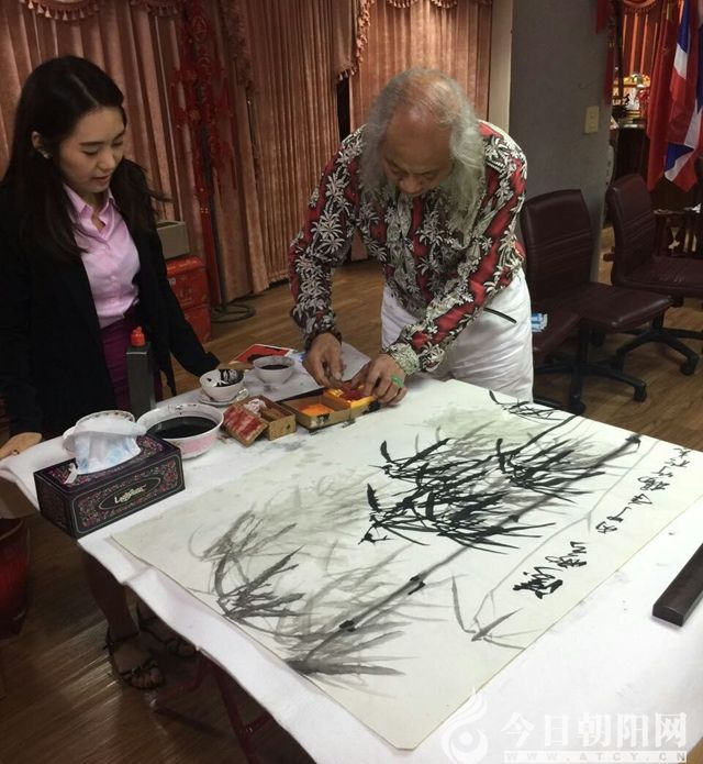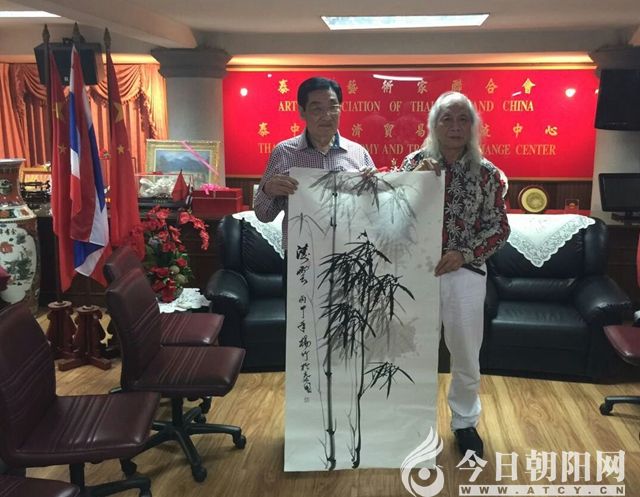 3月31日下午,以楊竹、張金玲、李鳴泉為首的絲綢之路城市聯(lián)盟代表團(tuán)在前開泰銀行副總裁吳培欽先生陪同下,前往泰中藝術(shù)家聯(lián)合會(huì)參觀訪問,并進(jìn)行現(xiàn)場(chǎng)藝術(shù)交流。泰中藝術(shù)家聯(lián)合會(huì)會(huì)長蔡羲批、泰中書畫院院長林廣峰接見了楊竹、張金玲、李鳴泉一行,并在總部與楊竹、張金玲、李鳴泉合作,創(chuàng)作出《梅蘭竹菊?qǐng)D》,寓意中泰友誼萬古長青。