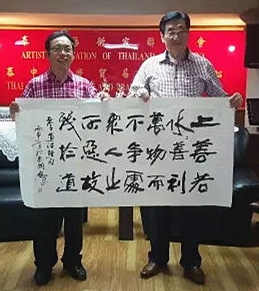 楊竹向泰中藝術(shù)家聯(lián)合會(huì)會(huì)長蔡羲批贈(zèng)送《凌云》作品