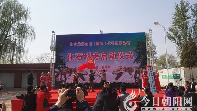 會(huì)后,與會(huì)代表和嘉賓參加了大城子鎮(zhèn)小城子村化石村揭牌儀式、捐書活動(dòng)、化石科考啟動(dòng)授旗儀式,還考察了喀左“中國暴龍”化石產(chǎn)地,參觀了該化石正型標(biāo)本。