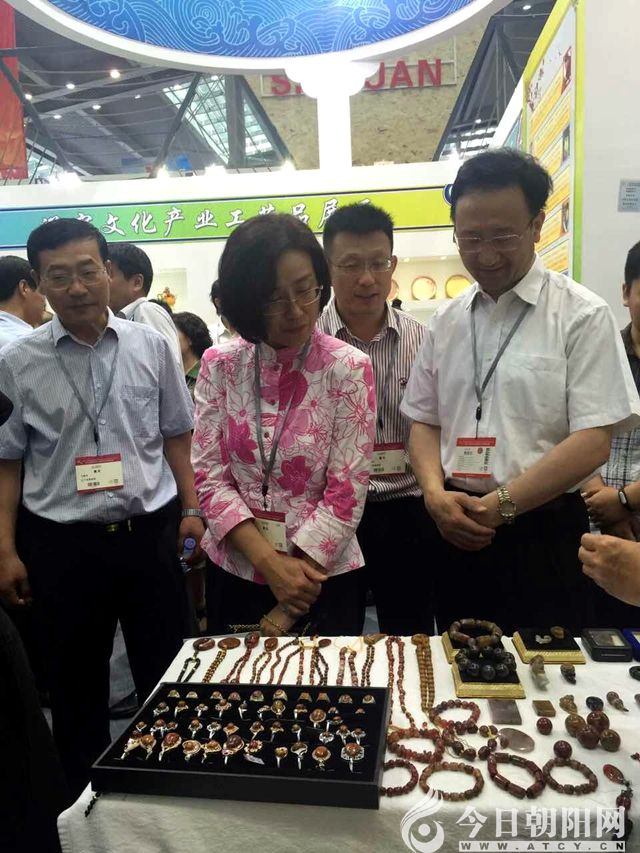 范衛(wèi)平部長(zhǎng)、吳忠瓊主任蒞臨朝陽(yáng)展區(qū)參觀指導(dǎo)(右一范衛(wèi)平、左二吳忠瓊、左一朝陽(yáng)市發(fā)改委副主任馬春良、右二朝陽(yáng)市委宣傳部副部長(zhǎng)劉利民)