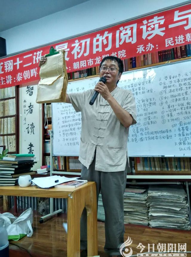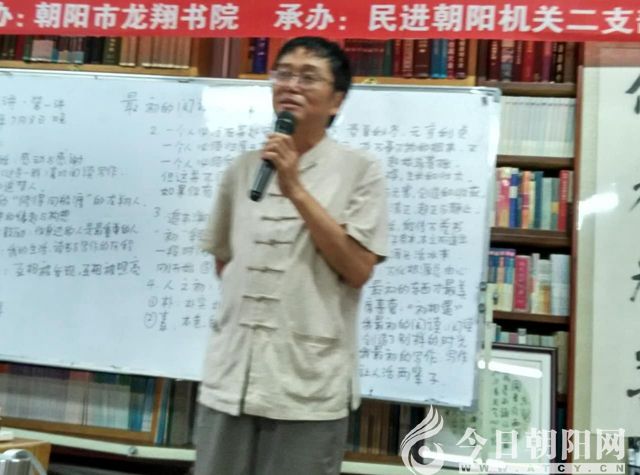 2016年7月8日,龍翔書院組織舉辦“閱讀寫作培訓(xùn)班”活動。通知一經(jīng)發(fā)出,立刻得到許多文學(xué)愛好者的積極響應(yīng)。是文學(xué)的“繆斯女神”,是龍翔書院的縷縷書香,是主講人秦朝暉老師的文才、人品,深深吸引了來自朝陽的文學(xué)愛好者。40多人從四面八方趕來,在悶熱得有些喘不過氣的夏日夜晚,大家依然興高采烈。學(xué)員中,既有六十多歲的老者,也有十幾歲的學(xué)童,整個書院頓顯熱鬧,熱烈,熱情!