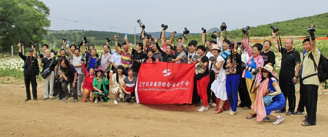 遼寧省攝影協(xié)會與凌源分會會員在凌源市熱水湯村百合谷合影
