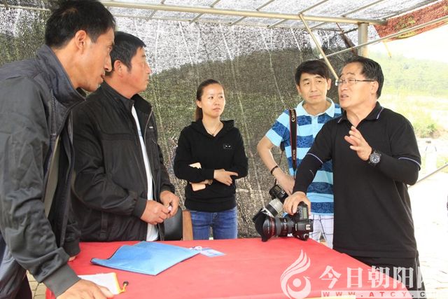 省紀(jì)實攝影協(xié)會主席武永明(右一)為凌源熱水湯村百合谷管理人員講解園區(qū)遠(yuǎn)景規(guī)劃,希望他們能把百合谷創(chuàng)辦成一流的攝影基地,讓更多的人來這里采風(fēng)。