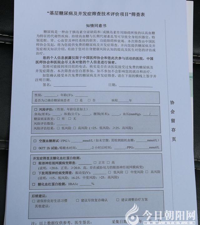 隨著人民群眾生活水平的提高,糖尿病已經(jīng)成為一種多發(fā)的慢性疾病,糖尿病患者也被民間人士戲稱為“糖人兒”。此次免費(fèi)篩查,是由中國醫(yī)師協(xié)會(huì)主辦,朝陽市第二醫(yī)院、朝陽市糖尿病防治中心協(xié)辦的糖尿病及并發(fā)癥篩查活動(dòng)的第二站。旨在提高糖尿病患者的確診率和治療達(dá)標(biāo)率,延緩糖尿病及并發(fā)癥的發(fā)生和發(fā)展。