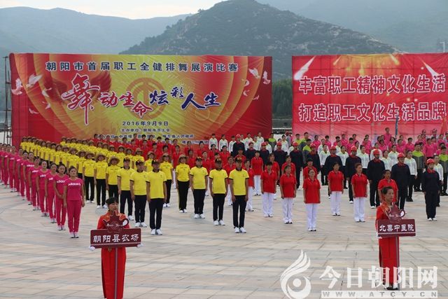本次比賽由朝陽市總工會主辦,中共喀左縣委員會、喀左縣人民政府承辦,喀左縣總工會、喀左三川集團天佑紫砂陶藝有限公司、遼寧喀左建設(shè)集團協(xié)辦。比賽在喀左縣美麗的龍源湖畔——凌河旅游文化園里隆重舉行。來自全市的12支代表隊,近500名健排舞隊員參加了比賽。