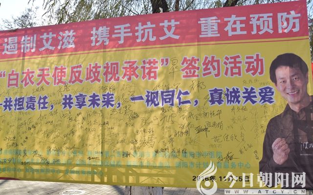 活動(dòng)現(xiàn)場(chǎng),鄭濱向市疾控中心工作人員詢問(wèn)了朝陽(yáng)市HIV感染者與艾滋病人的情況。同時(shí),來(lái)自朝陽(yáng)市疾控中心、市中心醫(yī)院、市二院、市衛(wèi)生監(jiān)督局等衛(wèi)計(jì)委直屬各單位的工作人員共同行動(dòng),通過(guò)懸掛宣傳橫幅、擺放宣傳展板、發(fā)放宣傳材料、播放宣傳標(biāo)語(yǔ)等形式,向過(guò)往群眾介紹艾滋病的相關(guān)知識(shí)。他們還共同在“遏制艾滋 攜手抗艾 重在預(yù)防”的展板上簽下了自己的名字。