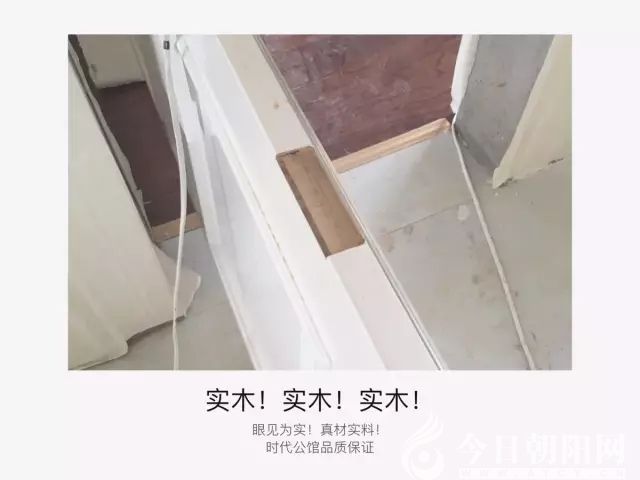 工人師傅根據門洞的尺寸,對每一塊門板進行加工,從切割面可以看到,時代公館的室內門全部為實木制成。