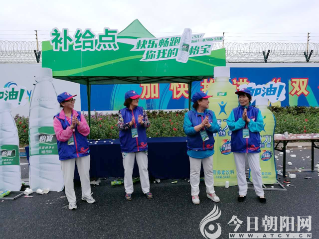 朝陽市人民公園群藝合唱團(tuán)歌友 李秀敏為馬拉松運(yùn)動員遞水