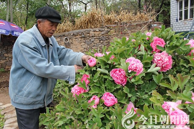 在古村落,和“舉人故居”一樣遠(yuǎn)近聞名的還有一株清朝道光年間從洛陽(yáng)運(yùn)回的“狀元紅”牡丹。 這株牡丹距今已有173年,每年花開(kāi)季節(jié)都有幾千人前來(lái)觀賞,深得大家喜愛(ài)。此花現(xiàn)保存在古村落許潤(rùn)忱家,許潤(rùn)忱是許家牡丹第八代傳人。清朝道光甲辰年(公元1844年),許植椿考中舉人,作為嘉獎(jiǎng),道光皇帝賞賜許植椿洛陽(yáng)牡丹一株。先人行程28天,用馬拉鐵輪車(chē)把牡丹從京城運(yùn)回老家,栽植在老宅的院子里,精心養(yǎng)護(hù),視為珍寶。上世紀(jì)50年代,許家人將牡丹移植新院。60年前,許潤(rùn)忱夫妻開(kāi)始接管這株牡丹。許潤(rùn)忱今年79歲,是退休教師,老伴董俊賢今年80歲。從結(jié)婚開(kāi)始接管牡丹62年來(lái),老兩口就像呵護(hù)孩子一樣呵護(hù)著“御賜牡丹”。為讓牡丹延年益壽,常年雍容綻放,老兩口精心管理,多年只施農(nóng)家肥并用井水澆灌。早些年,每到牡丹休眠期,老兩口就用柴草為牡丹建個(gè)新家。這些年,老兩口讓牡丹住上了“洋房”,給牡丹扣個(gè)塑料大棚。由于精心呵護(hù),牡丹由接管時(shí)的一株變?yōu)橐淮?、由花開(kāi)幾朵到現(xiàn)在花開(kāi)130多朵。整簇牡丹最高枝一米有余,冠徑3米,花朵直徑可達(dá)10厘米甚至十幾厘米。
