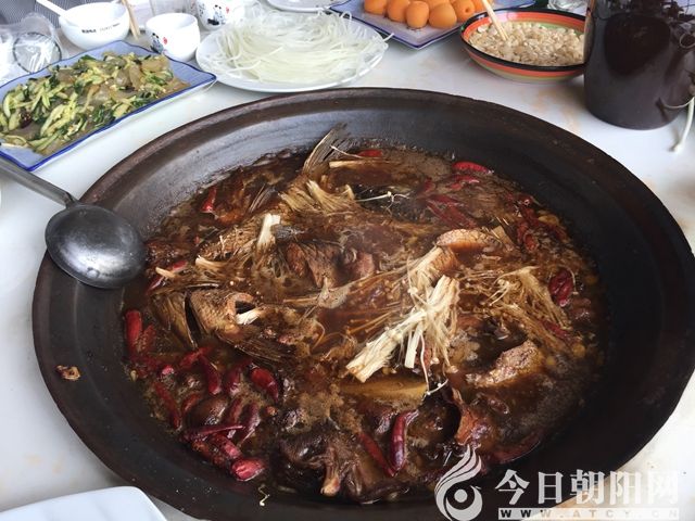到了杏府山莊,玩夠瘋夠耍累了,假如你有興致,必不可少要吃灶臺(tái)宴。一幫吃客圍坐著,眼睛盯在鐵鍋里,吃著鐵鍋燉魚,滋嘍滋嘍地喝著魚湯,品著“賽茅臺(tái)”本地小燒酒,那種爽快、愜意的感覺在舌尖上回味無窮,美了,絕了!