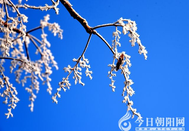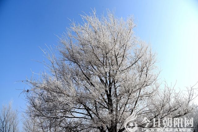 這天兒真應節(jié)氣,小雪剛過,一下子就冷了,冷得釋然。晴朗的夜空,靜得出奇,只有繁星在眨眼,感覺星星都凍僵了。清晨,視野之內被涂了一層冰花,特別是彎彎的柳絲上,冰雪晶瑩,如同走進畫一般的仙境中。霧凇——久別的朋友,突然出現(xiàn)在我面前!