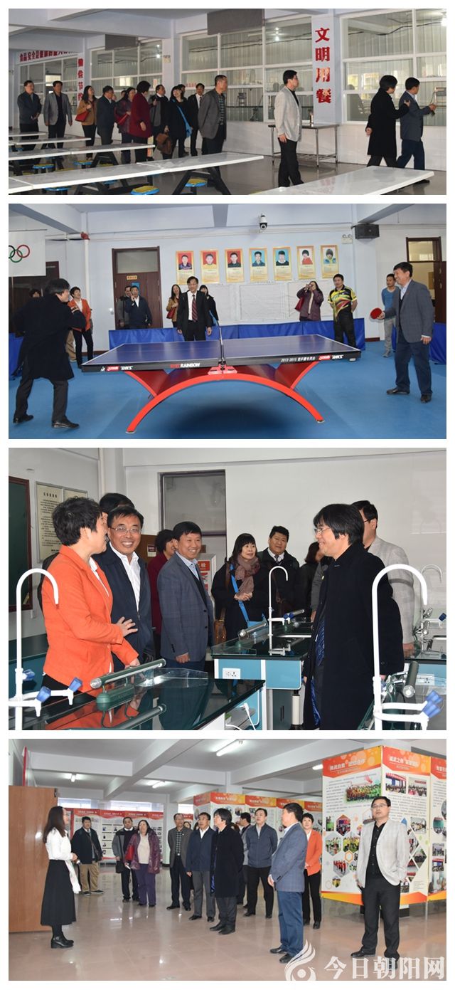 活動(dòng)現(xiàn)場(chǎng),賴(lài)炳華一行與市教育局領(lǐng)導(dǎo)、第二高中主要負(fù)責(zé)同志合影留念。緊接著,由二高校長(zhǎng)李文龍帶領(lǐng),一行人先后參觀了食堂、乒乓球館、生物實(shí)驗(yàn)室和校史展館。