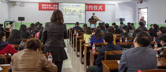 4月12日,芳名遠(yuǎn)播的塞外歷史文化名城——遼寧朝陽(yáng),風(fēng)和日麗,春暖花開(kāi)。當(dāng)日上午,香港李求恩紀(jì)念中學(xué)賴(lài)炳華校長(zhǎng)一行7人蒞臨朝陽(yáng)市第二高中,對(duì)該校進(jìn)行友好學(xué)術(shù)交流與訪問(wèn),并與該校簽訂了《朝港兩地姊妹學(xué)校締結(jié)計(jì)劃教育交流合作協(xié)議書(shū)》。朝陽(yáng)市教育(體育)局局長(zhǎng)金明新、副局長(zhǎng)孟祥文、基礎(chǔ)教育科科長(zhǎng)李鐵松,市教師進(jìn)修學(xué)院副書(shū)記佟英峰、各部門(mén)研訓(xùn)員以及市直各初、高中相關(guān)負(fù)責(zé)同志參加了活動(dòng)。