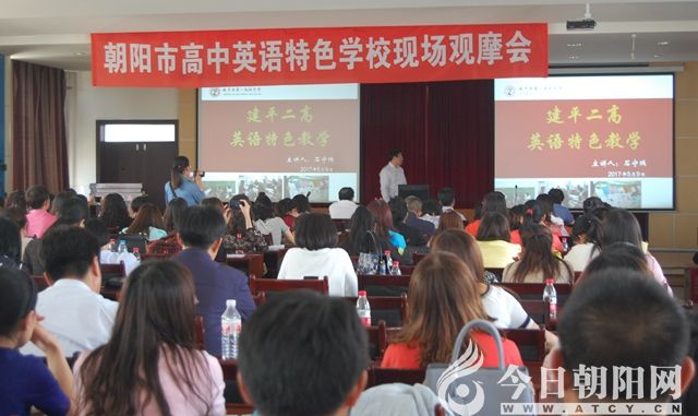 2017年5月9日,由朝陽(yáng)市教師進(jìn)修學(xué)院主辦、建平縣第二高級(jí)中學(xué)承辦的朝陽(yáng)市高中英語(yǔ)特色學(xué)?,F(xiàn)場(chǎng)觀摩會(huì),在建平縣第二高級(jí)中學(xué)舉行。觀摩會(huì)旨在深入推進(jìn)全市高中英語(yǔ)教學(xué)課程改革,提高學(xué)生英語(yǔ)學(xué)習(xí)水平和應(yīng)用能力,通過(guò)推廣建平二高中英語(yǔ)特色學(xué)校的創(chuàng)建經(jīng)驗(yàn),探索學(xué)科特色學(xué)校的創(chuàng)建方法和途徑,從而推動(dòng)全市普通高中辦學(xué)的多樣化、優(yōu)質(zhì)化和特色化。朝陽(yáng)市教育(體育)局、市教師進(jìn)修學(xué)院、建平縣教育局有關(guān)負(fù)責(zé)同志,以及來(lái)自全市20所高中的教學(xué)副校長(zhǎng)、英語(yǔ)教研組長(zhǎng)、英語(yǔ)教師共200多人參加了觀摩會(huì),來(lái)自錦州市北鎮(zhèn)高中的領(lǐng)導(dǎo)和教師也來(lái)到了觀摩會(huì)現(xiàn)場(chǎng)。