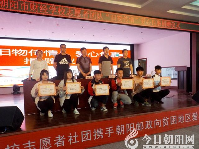 為進一步貫徹落實社會主義核心價值觀,努力踐行青年志愿者精神,5月16日,朝陽市財經(jīng)學(xué)校志愿者社團攜手朝陽郵政,舉行向貧困地區(qū)“舊物傳情、愛心包裹”捐贈儀式。青年志愿者們慷慨奉獻,將學(xué)生們捐贈的愛心包裹統(tǒng)一郵寄給西部貧困山區(qū)孩子。