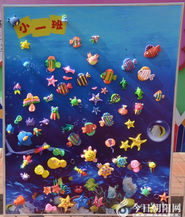 最后,小班分別在“有趣的海洋動物、昆蟲世界、家鄉(xiāng)的小動物、可愛的大森林、美麗的花朵”5個展板上,進行了分享展示。各具特色的泥工作品,吸引家長們彌留駐足,紛紛拍照留念。