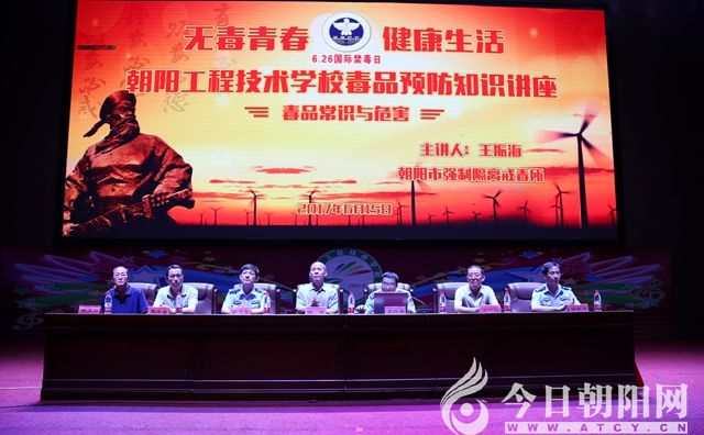 為宣傳和普及禁毒知識,教育青年學(xué)生與毒品劃清界限,圍繞“無毒青春 健康生活”這一國際禁毒日的宣傳主題,6月15日下午,朝陽工程技術(shù)學(xué)校邀請了朝陽市強(qiáng)制隔離戒毒所大隊(duì)長王振海、副大隊(duì)長吳風(fēng)雷等人,來學(xué)校作了一場題為“毒品的常識與危害”的專題講座,全校師生聆聽了這場講座。