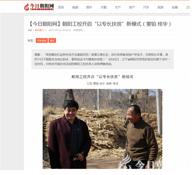 半年來,學校扶貧工作以專業(yè)為依托,以產(chǎn)業(yè)為引領(lǐng)的科技扶貧模式已經(jīng)形成,也取得了顯著的成效?!冻柸請蟆?、《燕都晨報》、《今日朝陽網(wǎng)》等媒體多次報道學校扶貧工作取得的成績,將學校扶貧工作的成功經(jīng)驗向社會推廣。