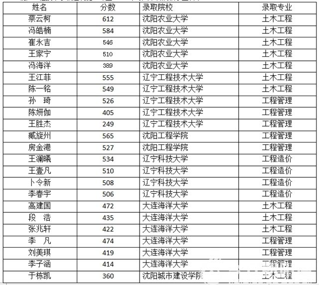 朝陽(yáng)工程技術(shù)學(xué)校建筑施工專業(yè)2017年考入本科院校學(xué)生名單