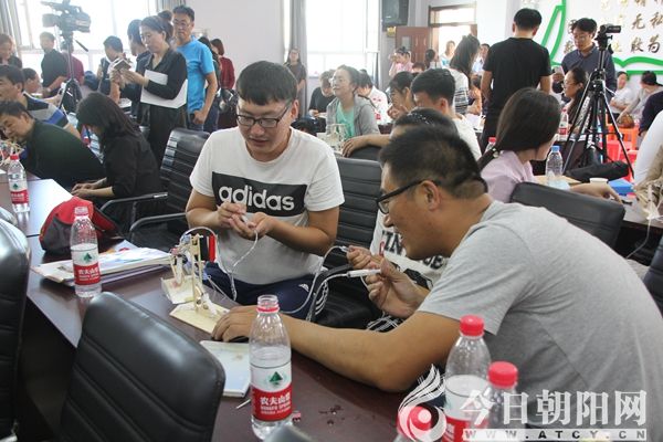 為增強(qiáng)對(duì)“STEM項(xiàng)目學(xué)習(xí)”“技術(shù)工程”的理解與認(rèn)識(shí),朝陽(yáng)市小學(xué)科學(xué)骨干教師譚冠一老師在培訓(xùn)會(huì)上執(zhí)教了科學(xué)社團(tuán)活動(dòng)課《制作液壓玩具》。參會(huì)教師紛紛被社團(tuán)活動(dòng)所吸引,爭(zhēng)相參與到研究活動(dòng)中。會(huì)場(chǎng)上呈現(xiàn)了老師們和同學(xué)們一起研討設(shè)計(jì)、嘗試實(shí)驗(yàn)、總結(jié)修正、探索完善的濃厚的研究氛圍。