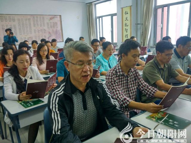 走進(jìn)樓層里面的一間教室,有40多位年齡不一的老師在誦讀。雖然他們的讀書聲沒有學(xué)生們那樣激昂,但卻在深沉的誦讀中領(lǐng)悟著《弟子規(guī)》的精氣神和教書育人的崇高責(zé)任。老師們眼睛注視著課本,思考的是培養(yǎng)英才的方略,是愛校愛生的品德,是誨人不倦的精神。