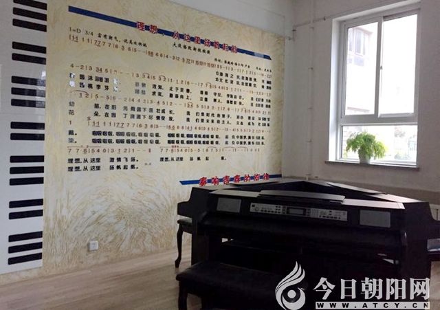 教學(xué)樓入口處的笑臉墻,由2009年建校時(shí)126名學(xué)生天真無邪的笑臉組成,見證著學(xué)校的發(fā)展。