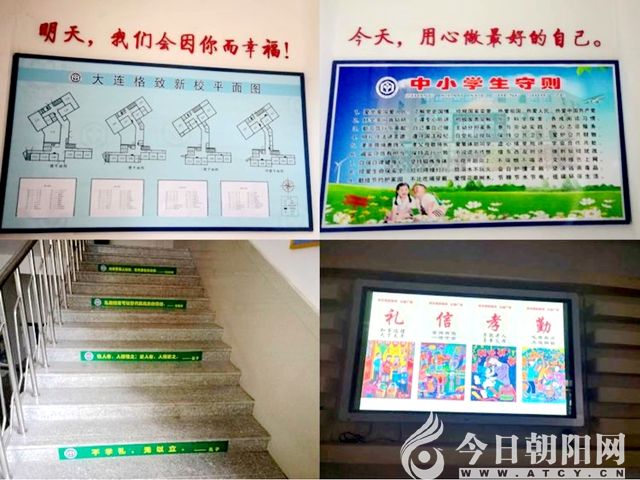 每層教學(xué)樓,都依據(jù)學(xué)生年級分布情況和身心發(fā)展水平設(shè)置不同的德育專題。那些將抽象的教育理念轉(zhuǎn)化為具體的教育行為的校園文化精髓,寓于有著深厚文化底蘊(yùn)的校風(fēng)校訓(xùn)中,寓于對初入學(xué)的一年級學(xué)生的習(xí)慣培養(yǎng)中,寓于畫面豐富又寓意深刻的浮雕墻上,寓于那些激勵(lì)著格致新校學(xué)生的“大連之子”的先進(jìn)事跡里。