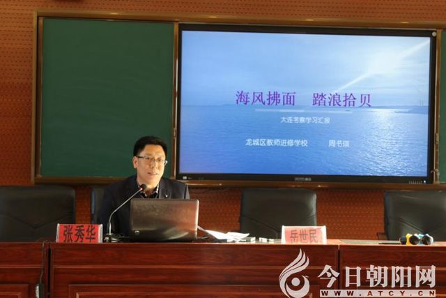 接著,分享工作得以升華。龍城區(qū)教師進修學校帶隊的中教部教研主任和副校長分別作了題目是《海風拂面 踏浪拾貝》和《潤澤生命 啟迪智慧》的匯報。分別就校園文化建設、辦學理念、管理辦法、研訓活動的開展和教學模式的探索在會上作了詳細匯報。