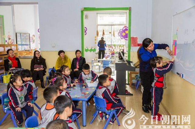 一行人抵達建平縣幼兒園后,在園方的介紹引領(lǐng)下,課改小組先參觀大、中、小各班的教室環(huán)境。各個班級環(huán)境創(chuàng)設(shè)十分新穎,分別有皮影戲小劇場、幼兒廚房(生活體驗區(qū))、茶藝館、主播電臺、木工房等頗具特色的活動區(qū)。孩子們選擇自己喜歡的項目參與其中,激發(fā)興趣,開發(fā)智力,積累知識。隨后,課改小組成員自行選擇班級,參與聽課活動。