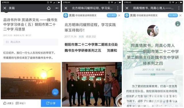 每次考察學(xué)習(xí),都有專人負(fù)責(zé),每天向?qū)W校工作群發(fā)回美篇報(bào)導(dǎo),及時(shí)反饋學(xué)習(xí)情況,回校后進(jìn)行專題考察報(bào)告。這些活動(dòng)大大開拓了教師和領(lǐng)導(dǎo)干部的工作視野,調(diào)動(dòng)了全體教師的工作熱情,拓寬了班主任和學(xué)科教師的工作思路。全校教師無不摩拳擦掌。躍躍欲試,大有要大干一番,不做出點(diǎn)成績勢(shì)不罷休的勢(shì)頭。